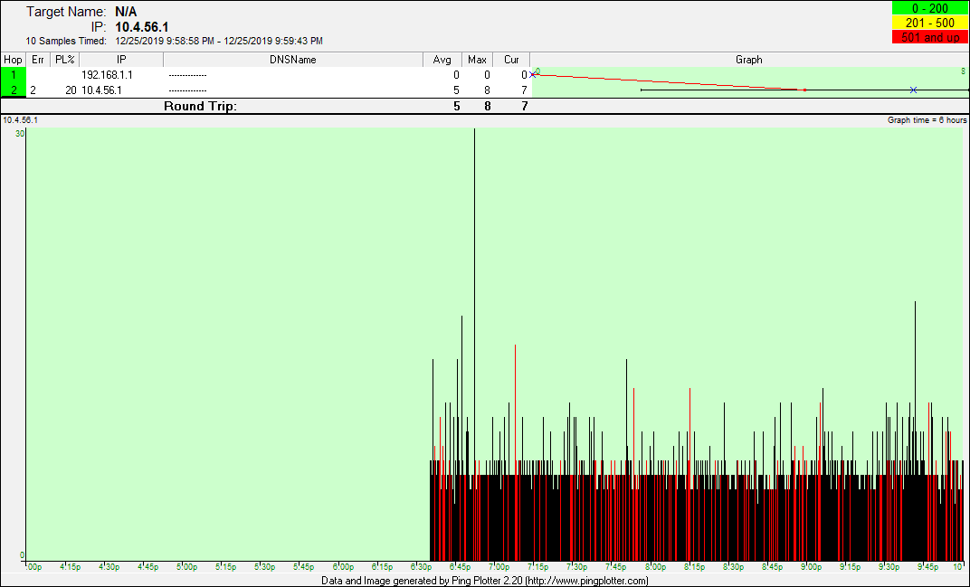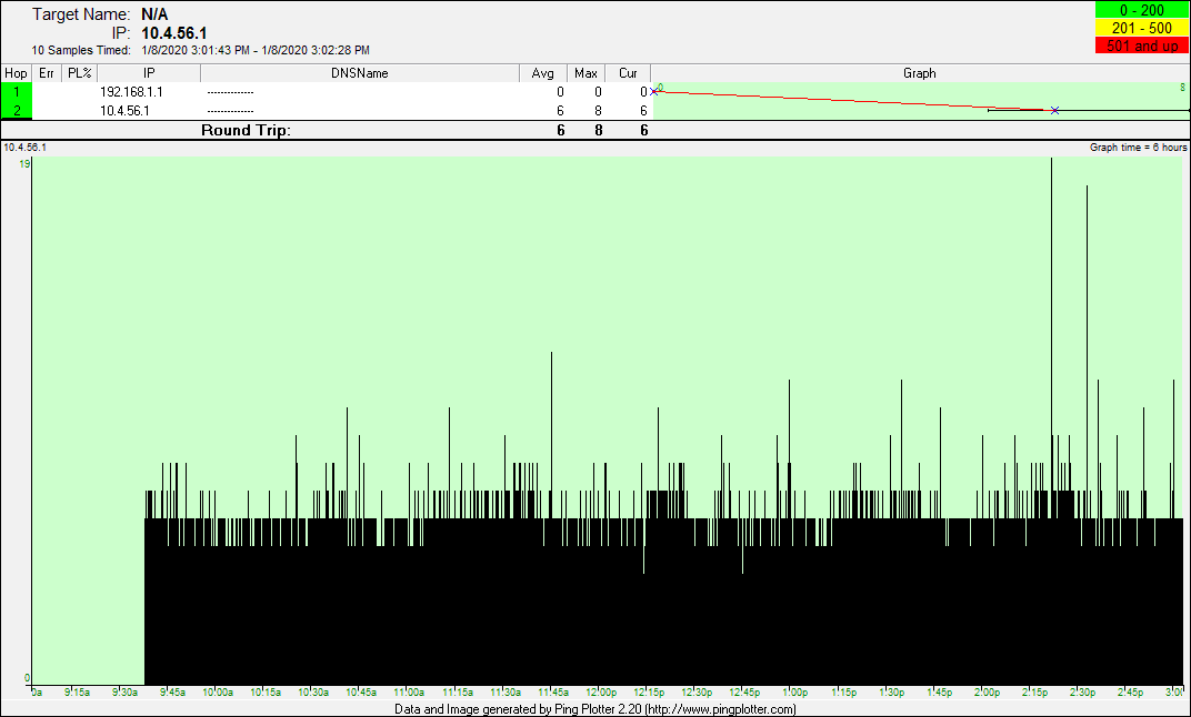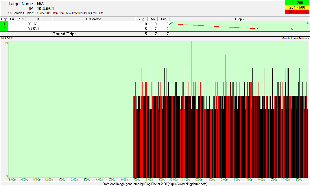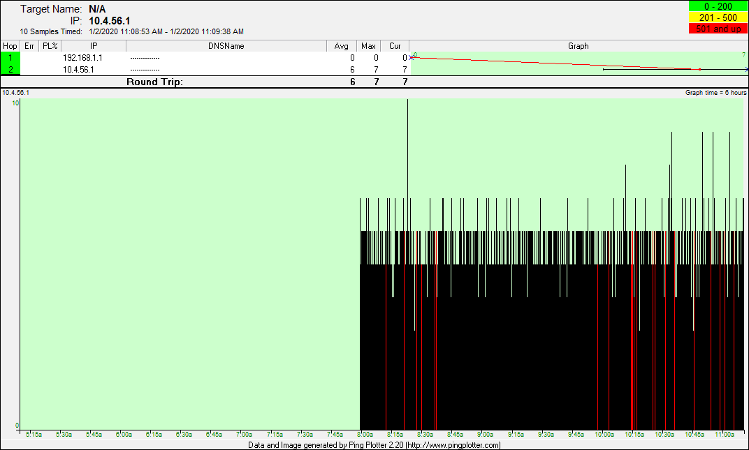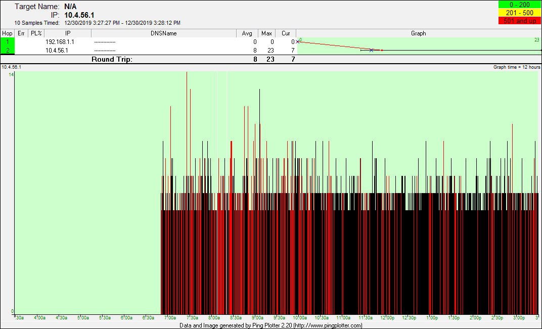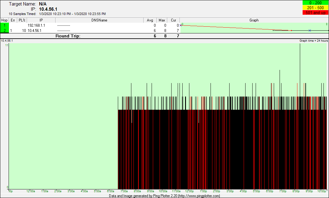 date from there. The pingplotter screenshots represent good