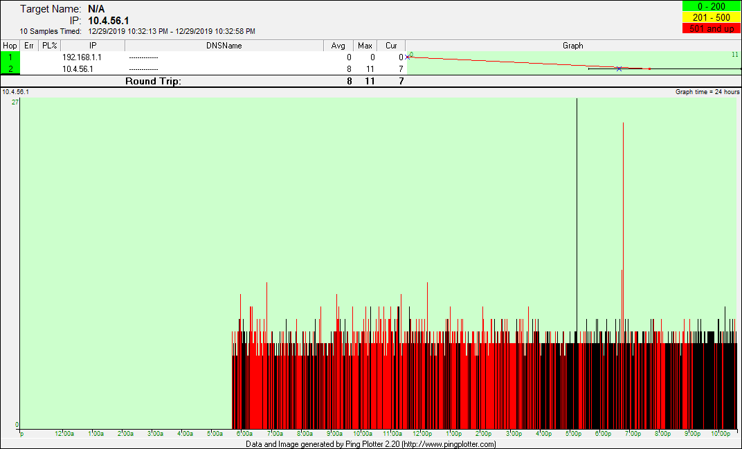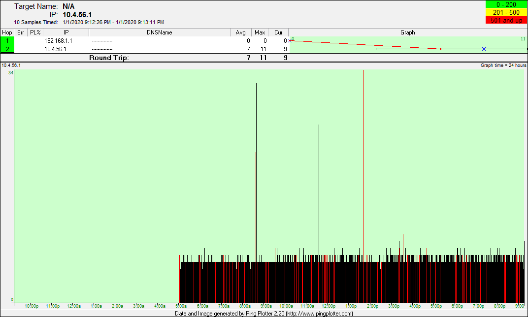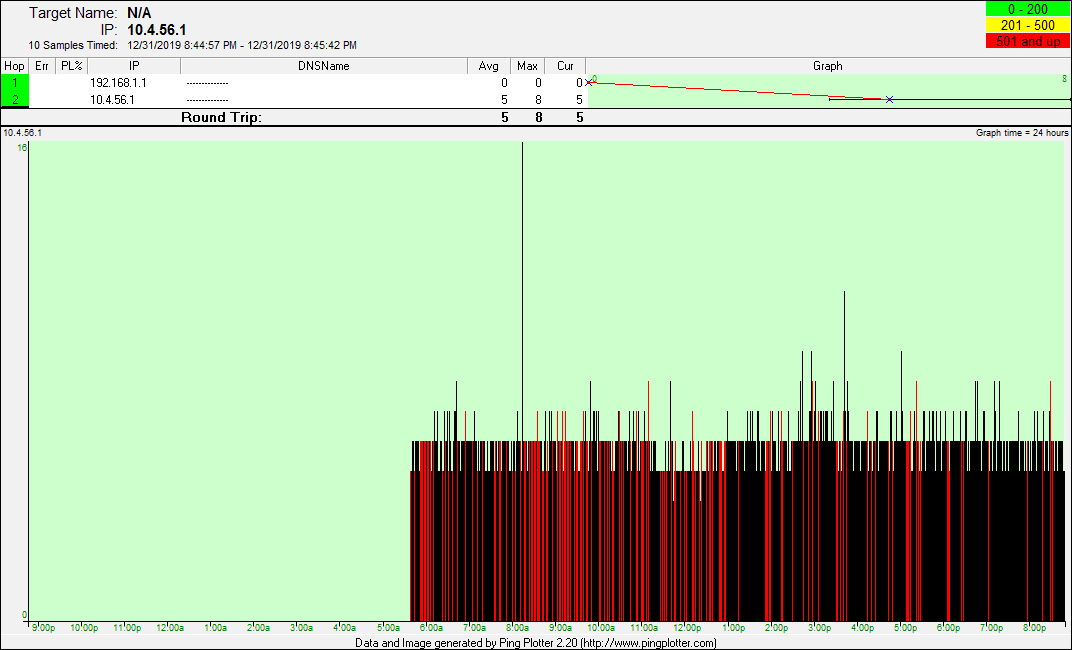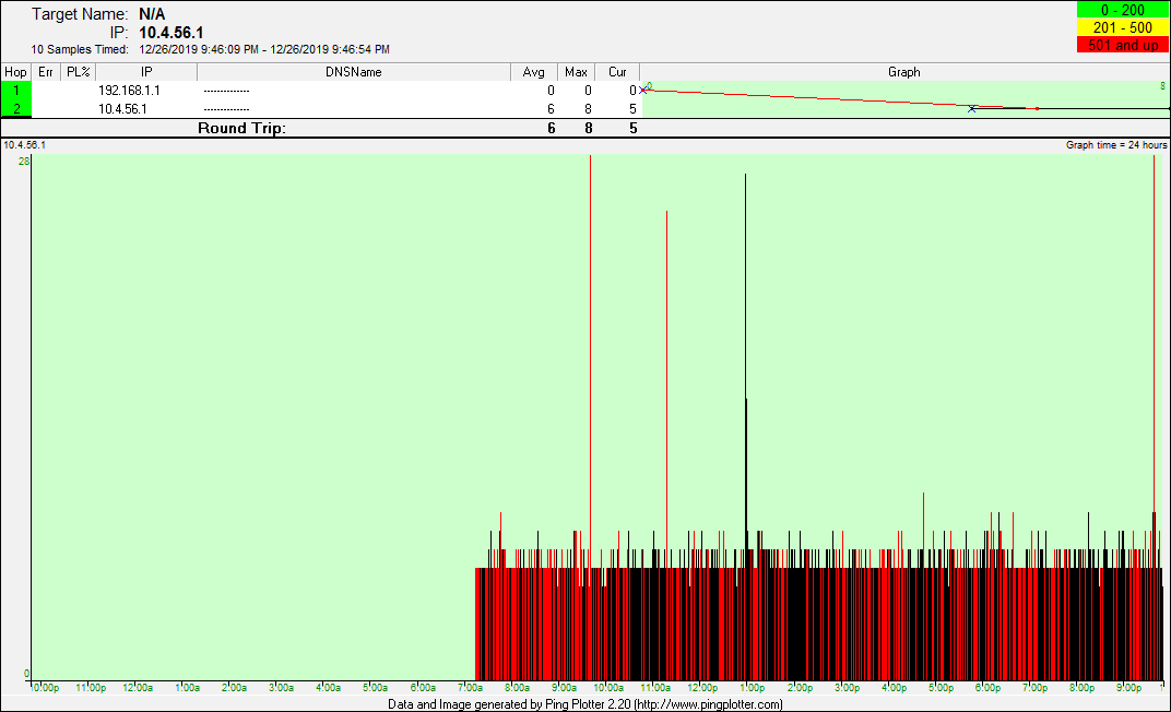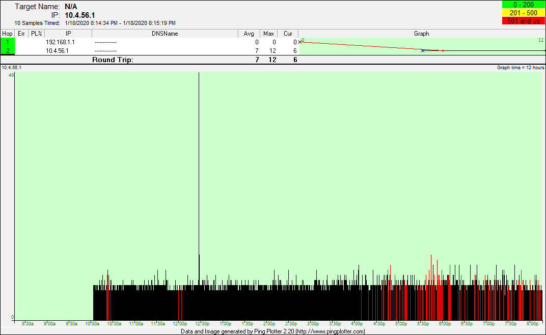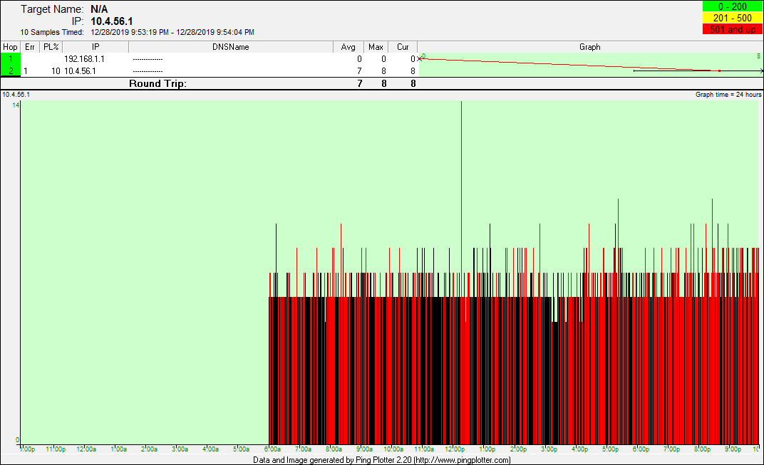 date from there. The pingplotter screenshots represent good